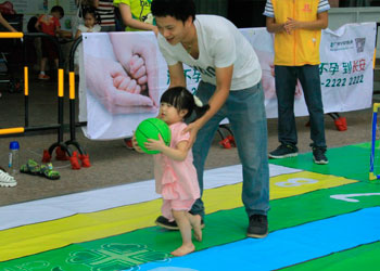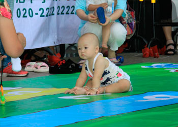 参加爬行赛的很多宝宝们由于站起来走步太多而犯规,只能得到纪念奖品。但是家长们都毫不介意,带着小宝宝们在比赛场地“摸爬滚打”,享受着难得的亲子时光。主办方提醒,家长在给小宝宝报名的时候请注意年龄限制,5岁以下的小朋友可参加接力赛,2岁以下的宝宝可参与爬行赛。