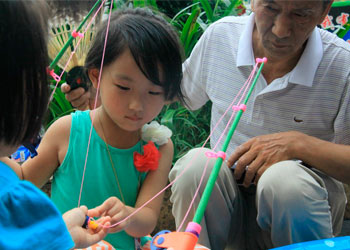 比赛开始之前,已经有不少家庭聚集在广场中参加互动游戏——萌宝钓鱼大师、萌宝表情帝、安安拼图王。宝宝们每完成一项游戏就能获得一张小卡片,凑齐三张就能赢取大奖品。“宝宝在玩游戏的过程中还能拿到奖品,当然很开心。我们也喜欢这样的活动,跟孩子一起玩耍”,带着孩子玩安安拼图王游戏的李先生表示,“下次有这种活动也会过来参加,宝宝开心,我们也很高兴。”