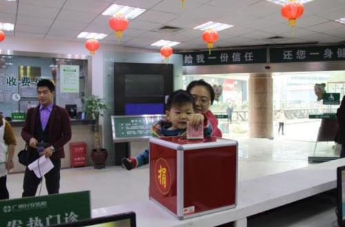 乐捐的小朋友把百元放进了捐款箱